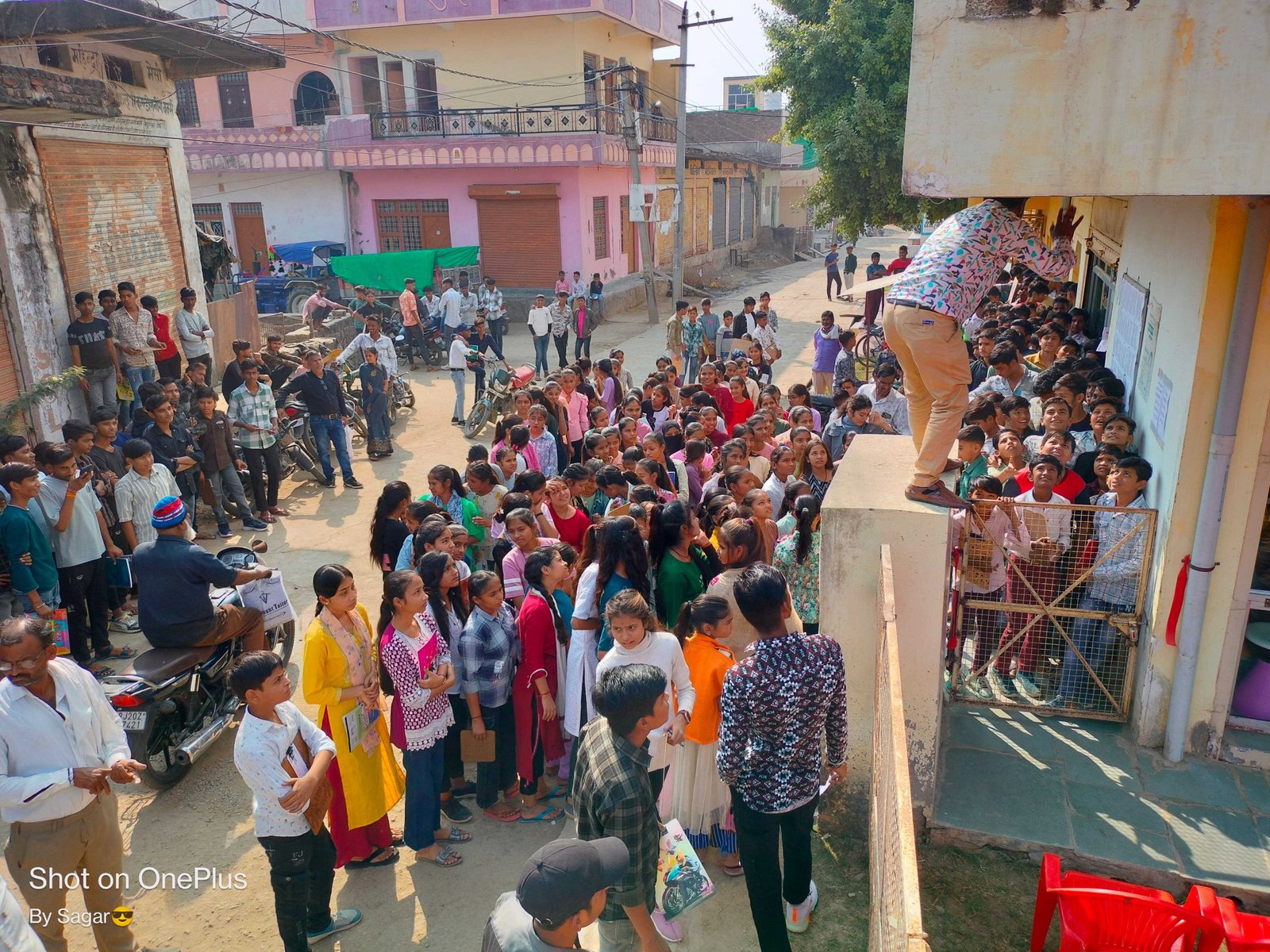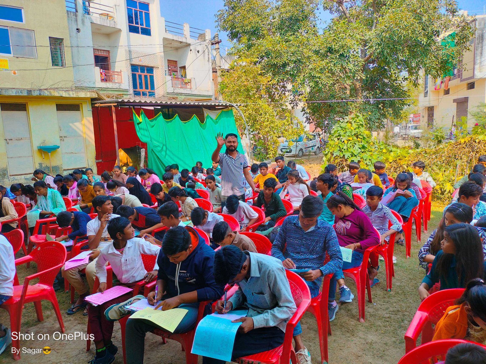 अर्जुन ग्रुप इटावा में परीक्षा देने वाले विद्यार्थी