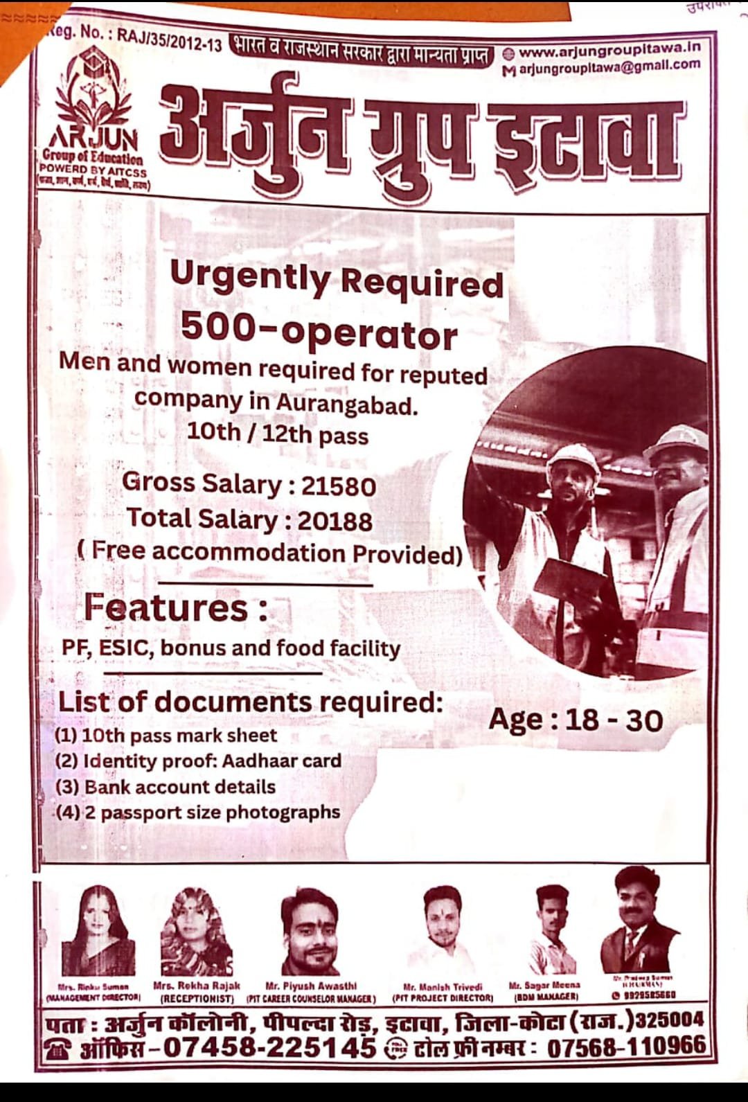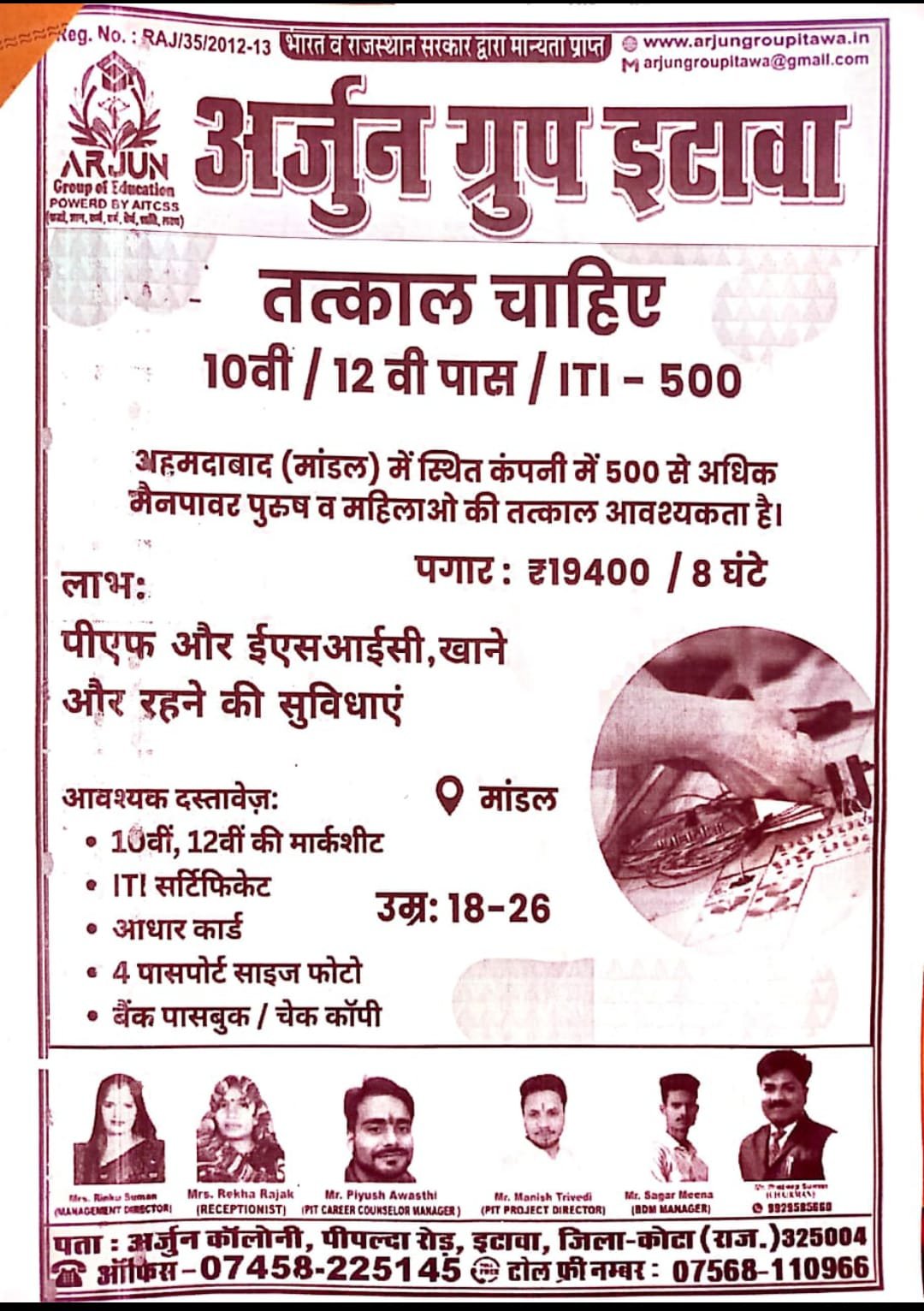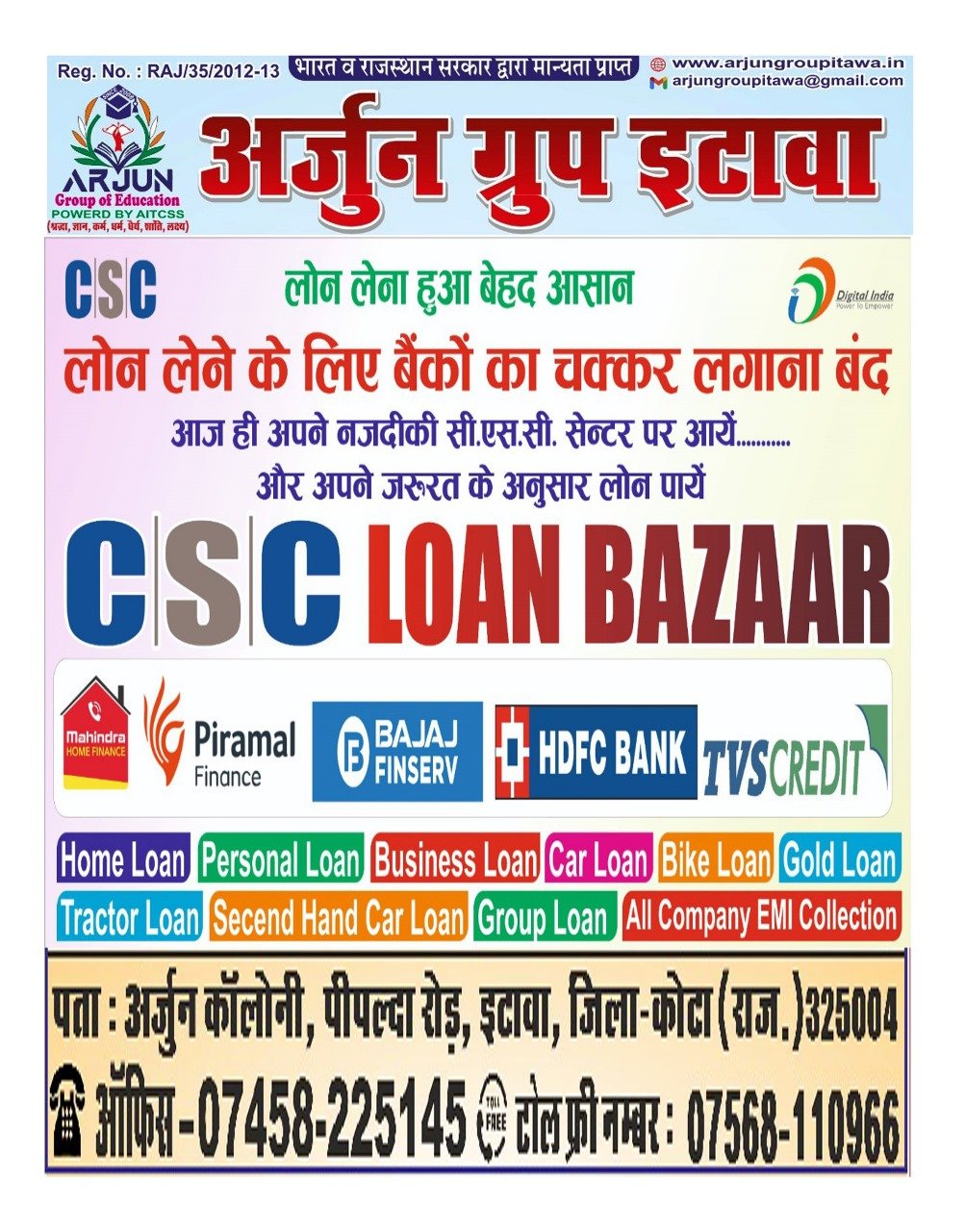 TOLLFREE: 07568110966 OFFICE: 07458225145, CHAIRMAN: 09929585660