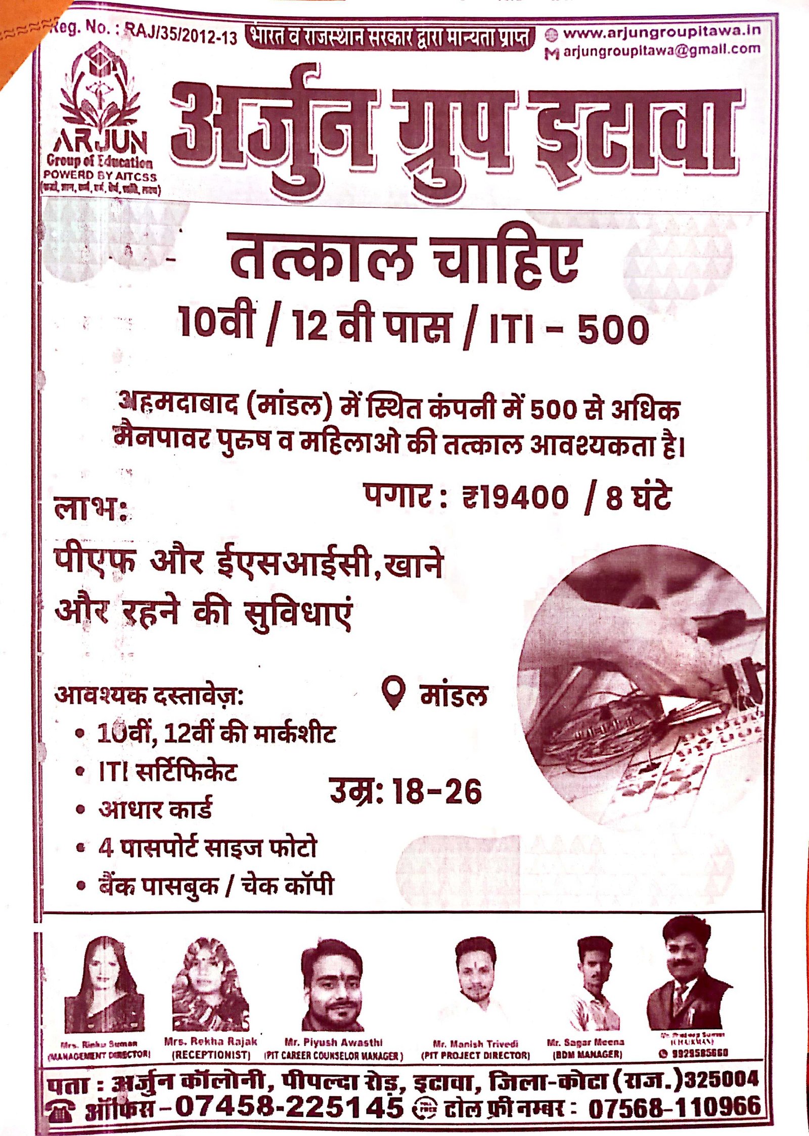 TOLLFREE: 07568110966 OFFICE: 07458225145, CHAIRMAN: 09929585660